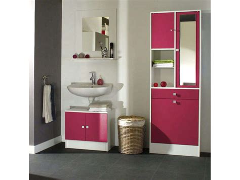 Armoire Salle De Bain Avec Bac A Linge Et Miroir Wave Coloris Blanc Fuchsia Conforama