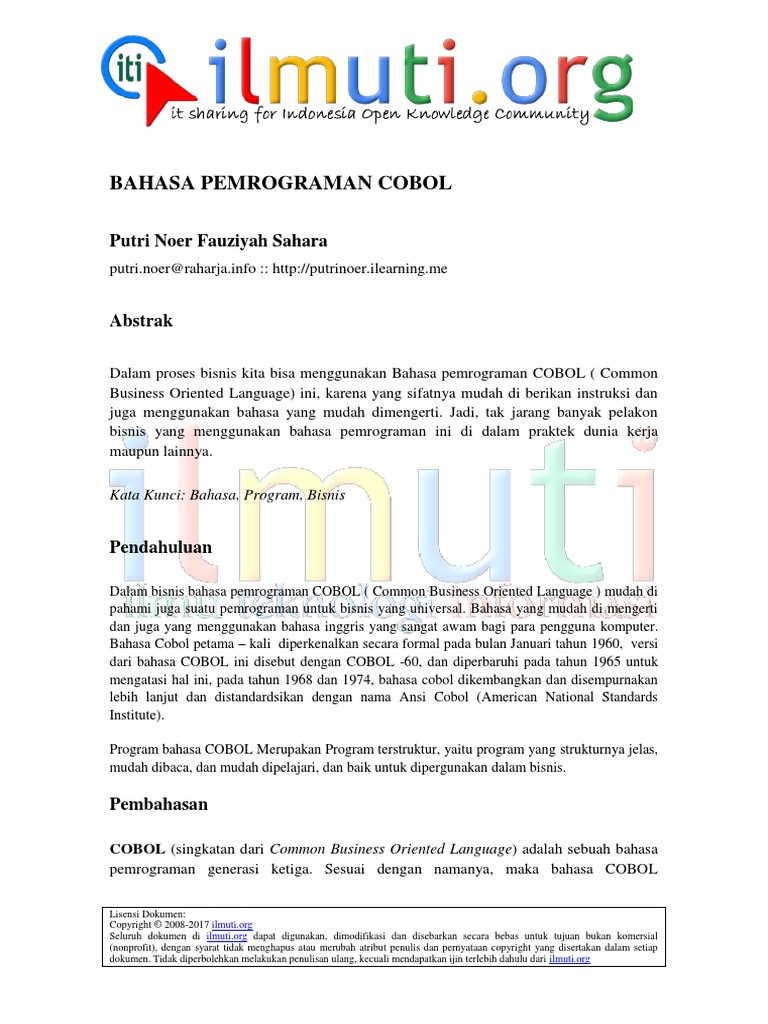 Putrinoer Artikel Bahasa Pemrograman Cobol Pdf
