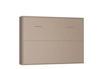 Armoire Lit Horizontale Escamotable Strada V2 Taupe Mat Couchage 140 200 Cm