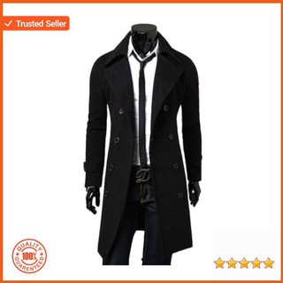 Promo Jaket Coat Pria Men Solid Long Woolen Coat Casual Business Male Jacket Outwear Berkualitas