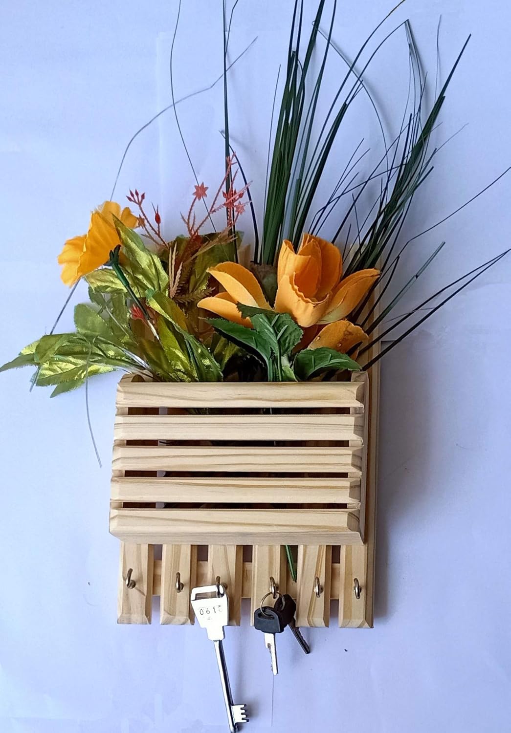 Iwud Letter Rack Cum Key Holder 6 Hooks Rectangle Bamboo Key