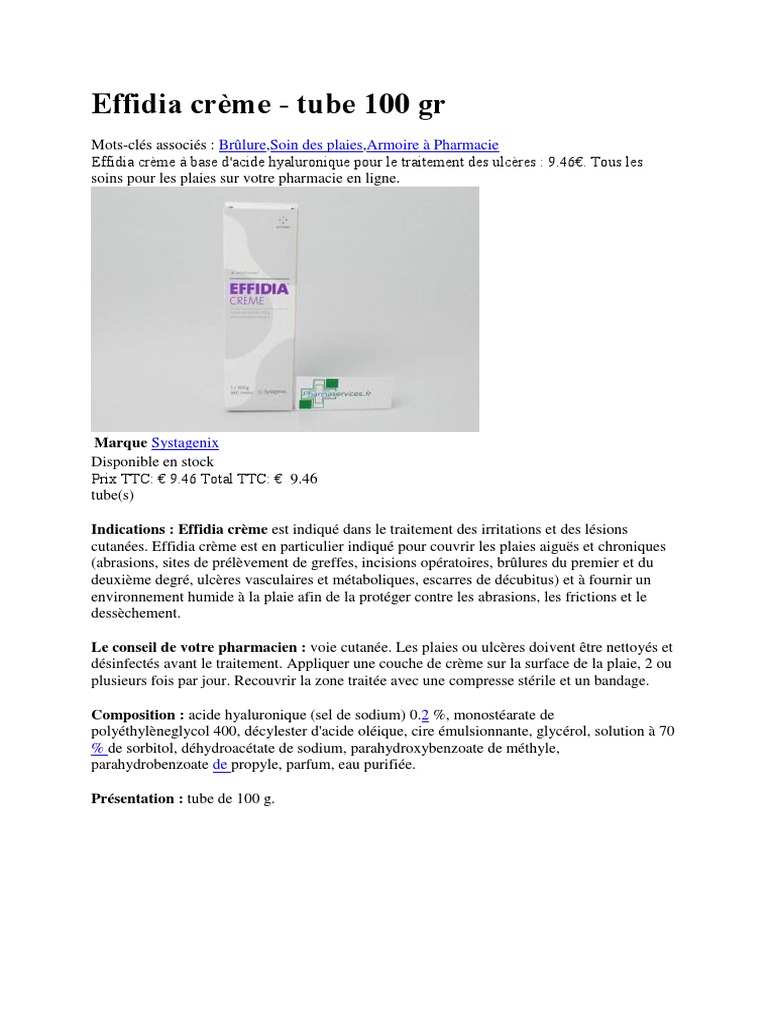 Effidia Creme Tube 100 Gr Brulure Soin Des Plaies Armoire