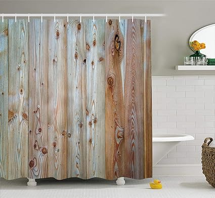 Rustic Home Decor Shower Curtain By Ambesonne Monochrome Wood Minimalist Rough Lined Up Tiled Logs Row Plank Surface Image Fabric Bathroom Decor Set