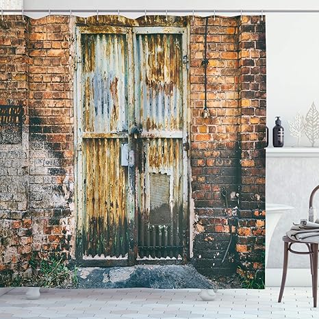 Ambesonne Rustic Home Decor Shower Curtain By Dilapidated Metallic Door Gate Entrance To Old Brick Wall Factory Urban Design Fabric Bathroom Decor