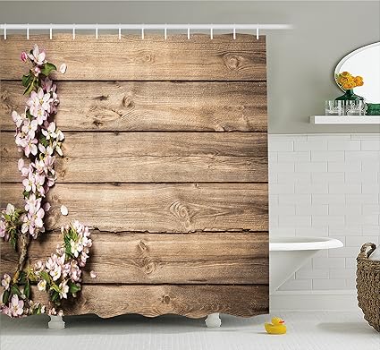 Ambesonne Rustic Home Decor Shower Curtain Sweet Spring Flowering Branch On Weathered Wooden Blooming Orchard Fabric Bathroom Decor Set With Hooks
