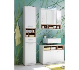 Meuble De Salle De Bain 120 Cm Bermudes Blanc Et Imitation Chene