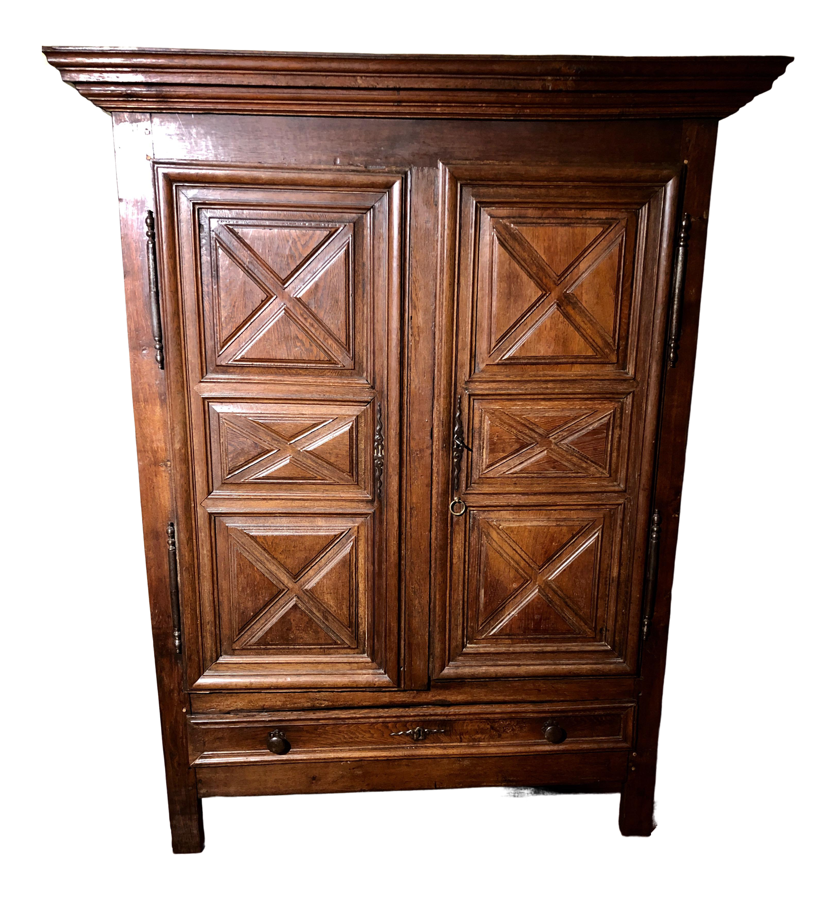 Antique French Louis Xiii Raised Croisillons Motifs Armoire