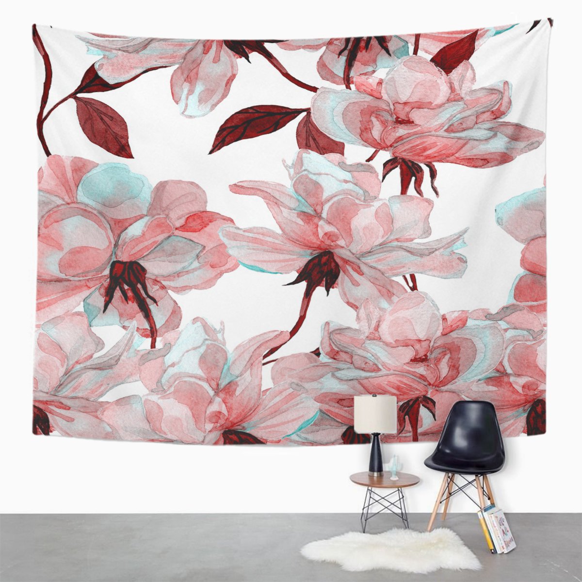 Tompop Tapestry Blue Flower Watercolor Rose Floral Colorful Maroon Allover Beautiful Home Decor Wall Hanging For Living Room Bedroom Dorm 50x60 Inches