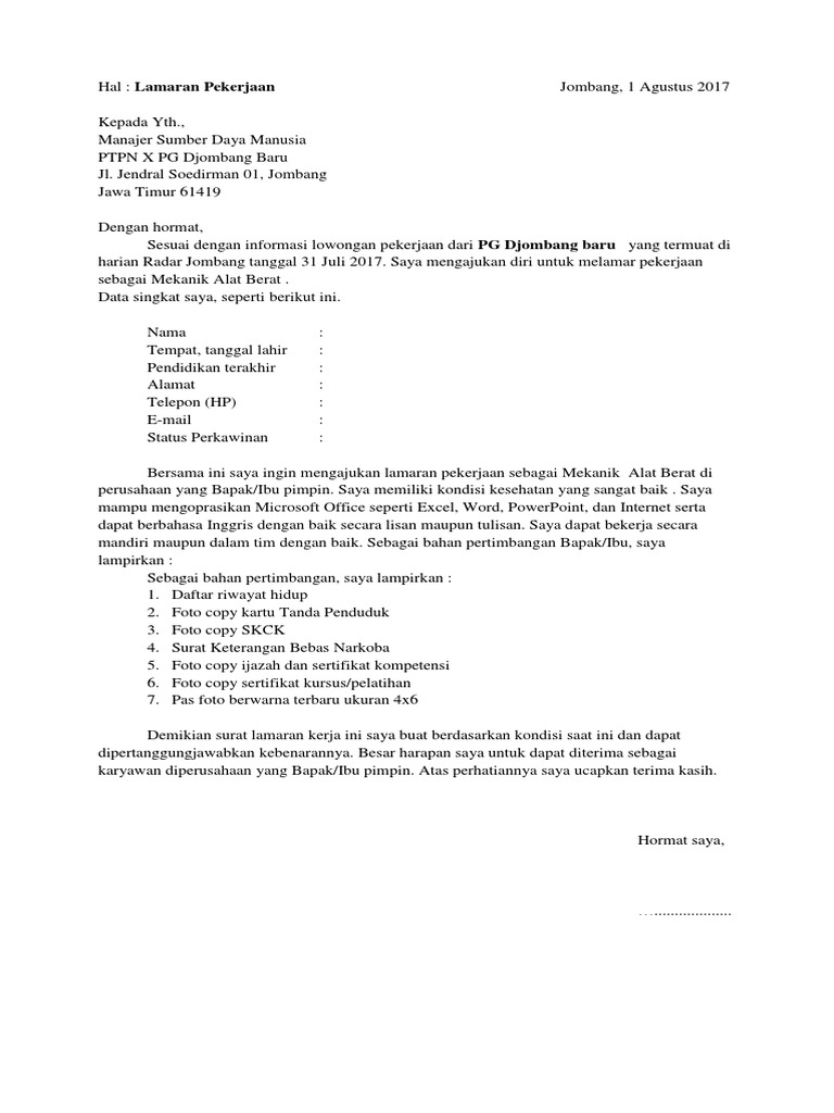 30 Contoh Surat Lamaran Kerja Doc Yang Bagus Dan Benar Full from i2.wp.com Surat lamaran kerja merupakan surat dari perseorangan yang bersifat resmi yang dalam penulisannya harus menggunakan tata bahasa yang meski demikian, ada beberapa perusahaan yang kerap mewajibkan palamarnya untuk membuat surat lamaran kerja berbahasa inggris. Contoh surat lamaran kerja dalam bahasa inggris. Demikianlah beberapa contoh surat lamaran dalam bahasa indonesia. Contoh surat lamaran kerja bahasa inggris dan artinya ini tentunya menjadi incaran bagi anda yang ingin melamar pekerjaan di sebuah perusahaan multinasional. Contoh undangan rapat bahasa inggris dan artinya mungkin saja banyak dicari orang. Untuk dapat mendownload contoh surat lamaran bahasa inggris dan artinya dalam format.doc silahkan klik link yang tersedia berikut ini kita akan menjelasakan contoh surat lain pada artikel selanjutnya. Berikut ini adalah contoh surat lamaran dalam bahasa inggris dan artinya dalam bahasa indonesia. Untuk perusahaan tertentu, terkadang perusahaan mengharuskan kandidat untuk menguasai bahasa asing seperti bahasa inggris.